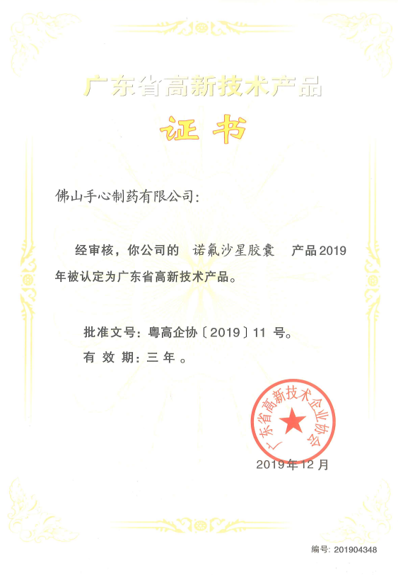 诺氟沙星胶囊-2019年高新技术产品