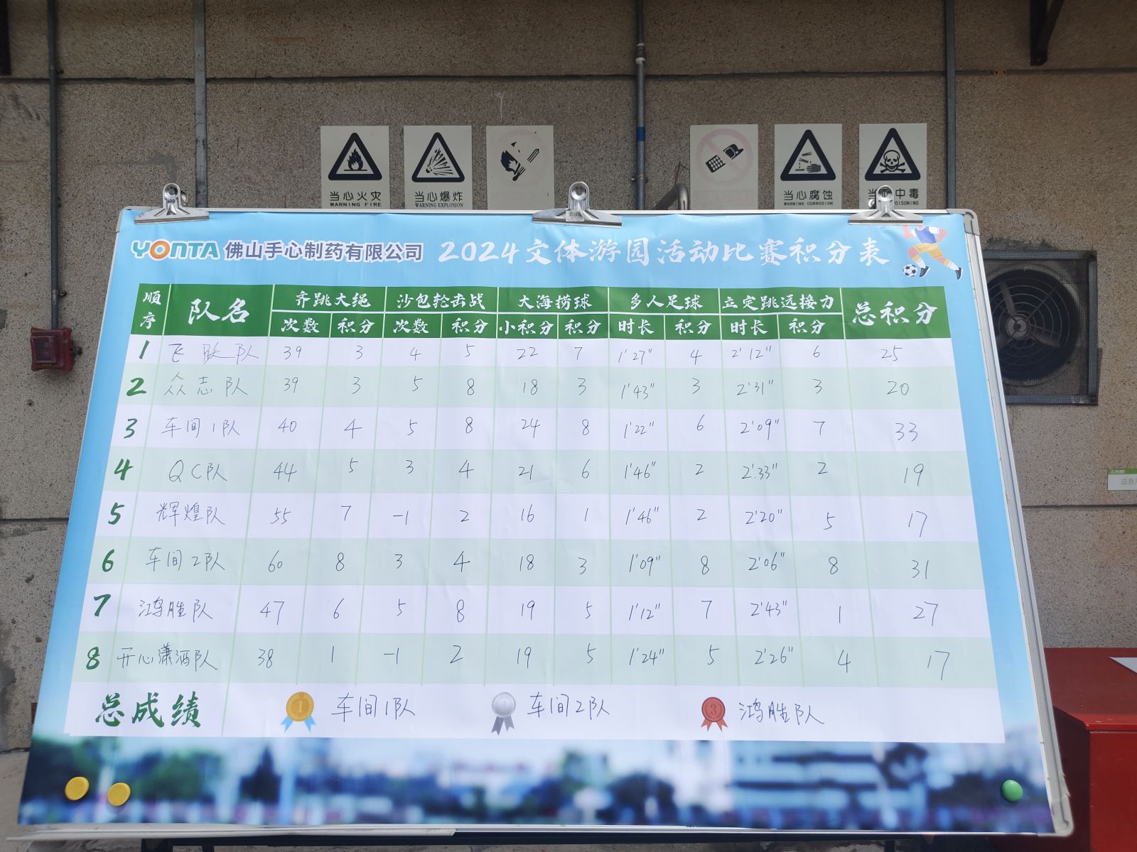 最后由公司总经理黄春萌为第一名颁奖,第一名是车间1队,车间1队在比赛前刻苦训练,最终稳定发挥,登上了第一名的位置,他们的口号“车间1,争第一”还真是不负所望!